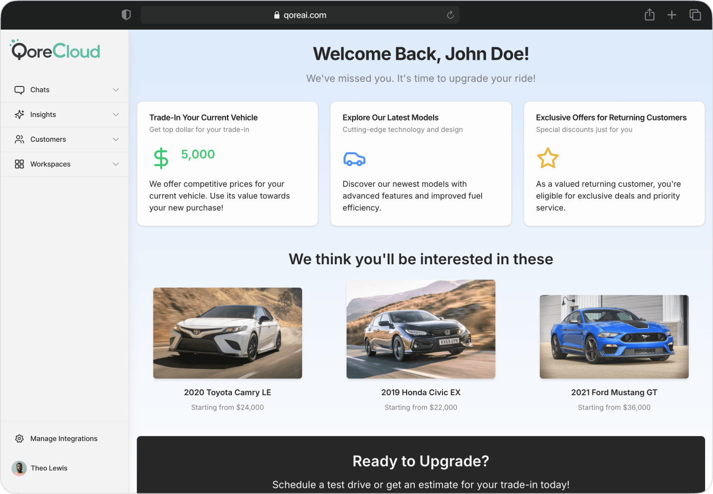 In today’s competitive auto market, dealers need to speed up the path to purchase. QoreAI’s DealershipOS helps you do exactly that — combining private messaging, smart AI automation, and seamless tech integration to protect your dealership and deliver a premium customer experience.